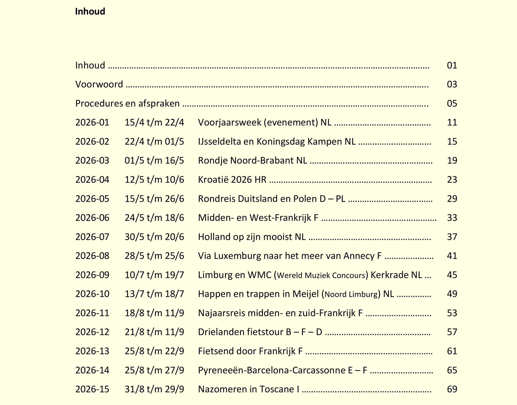 Reizen en Evenementen 2026