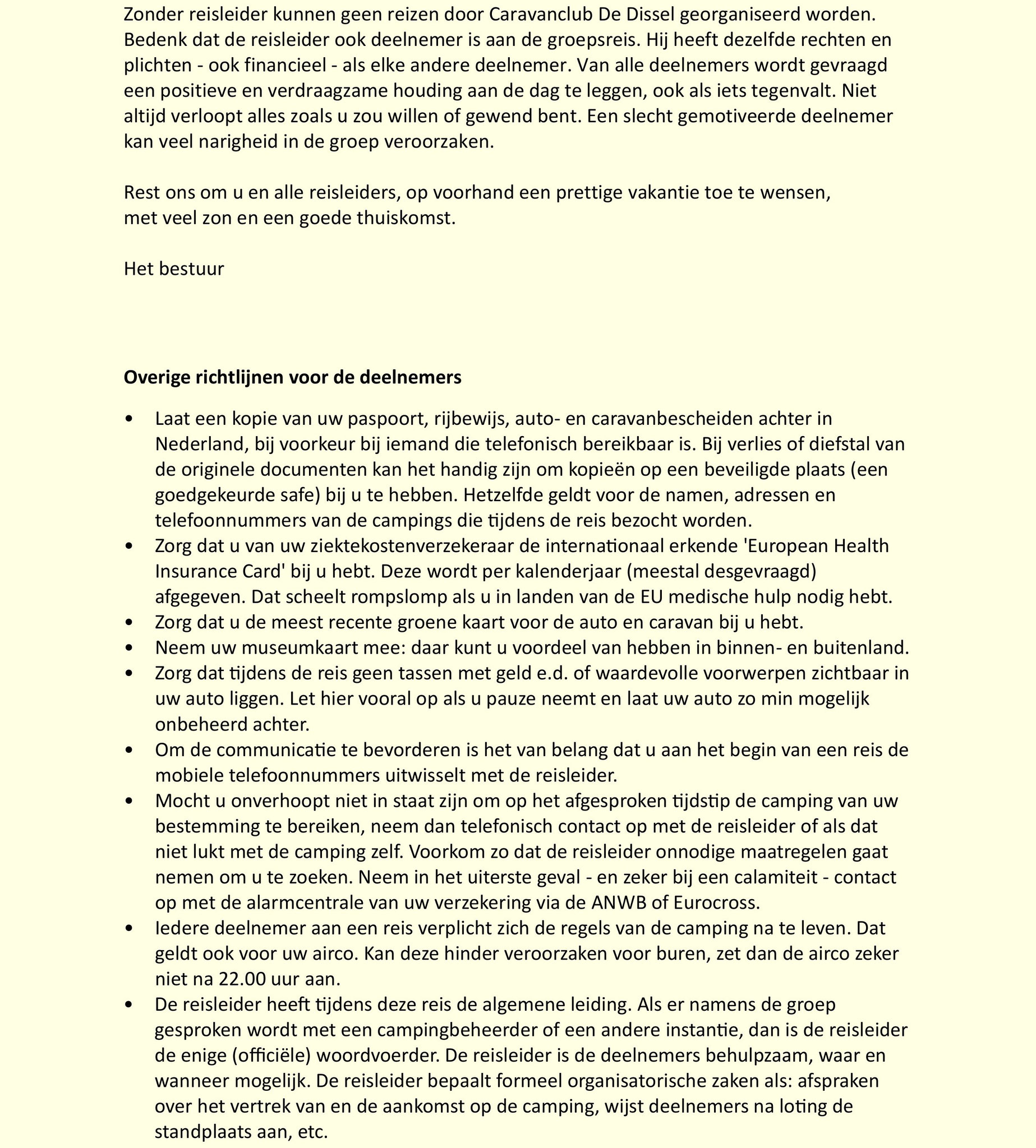 Info voor reisleiders